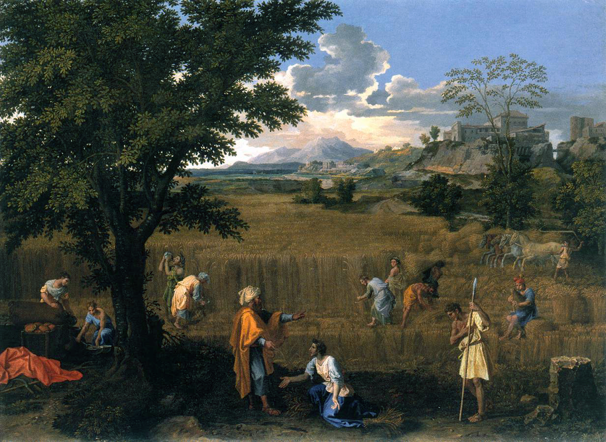 The Summer (Ruth and Boaz) / L’été (Ruth et Boaz), 1660-1664, Nicolas Poussin (French Baroque Era Painter, 1594-1665), oil on canvas, 118 x 160 cm, Musée du Louvre, Paris, France. From the series: The Four Seasons. Large size here.