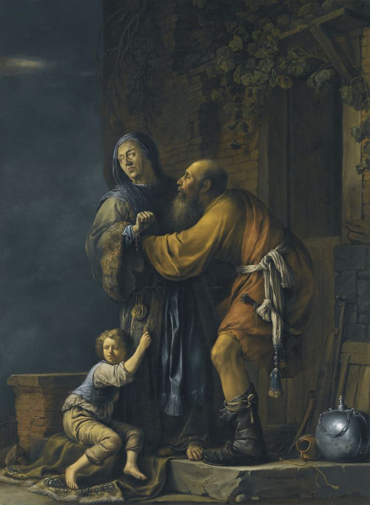 Abraham pleading with Sarah on behalf of Hagar (Abraham plaidé avec Sarah au nom d’Agar), 1631, Willem Bartsius (Dutch Baroque Era Painter, 1612–1657), oil on canvas, 120.8 x 89.2 cm (47.6 x 35.1 in.), Private Collection. Large size here.